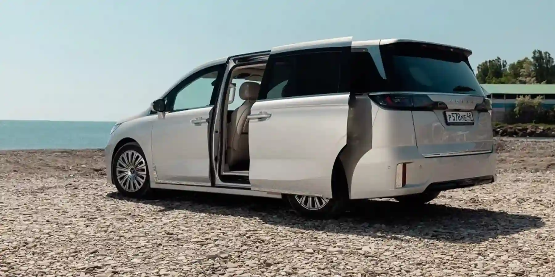 Тестовый ФРИ / FREE не просто EVR, а Long Range, у него батарея не 33, а 39 кВт•ч. Пусть мощности у него при этом поменьше — 489 сил, а не 694, как у обычного EVR, и разгон до сотни не за 4,5, а за 4,8 секунды. Зато дальнобойность — 800, теоретически весь наш двухдневный маршрут по побережью можно проехать на одной зарядке — это если размеренно и плавно. Как по волнам на яхте, которую Voyah ФРИ / FREE очень напоминает. И плавными обводами кузова, особенно если он цвета «голубой металлик», и местом водителя, оформленным под кокпит.