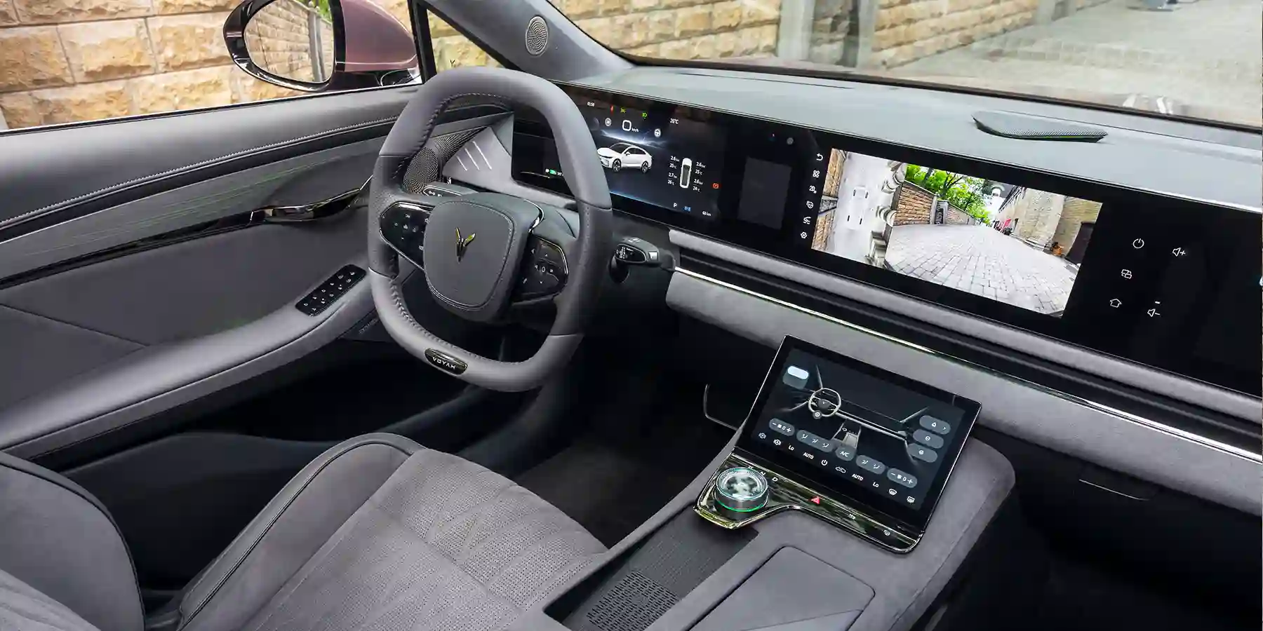 Интерьер VOYAH СТРАСТЬ / PASSION олицетворяет собой роскошь и непревзойденный комфорт, а передовые технологии, примененные в создании седана, позволяют заглянуть в будущее, доступное в настоящем. Водителя и пассажиров встречает 1,4-метровый тройной «парящий» сенсорный дисплей, а инновационный кокпит заботливо проецирует ключевые показатели органов управления на лобовое стекло.