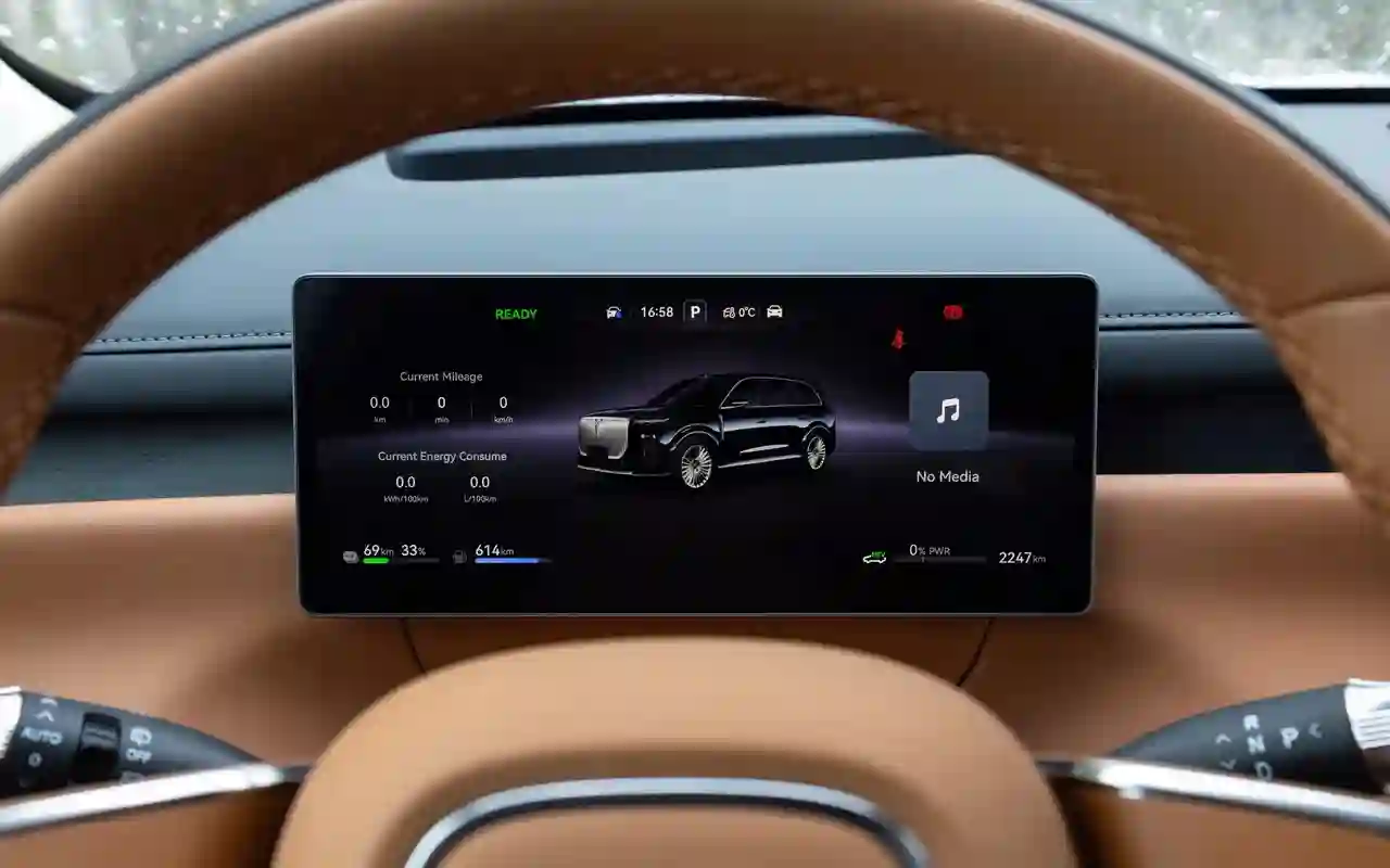 1,5-литровому 150-сильному турбомотору под капотом VOYAH ТАЙШАН / TAISHAN приходится трудиться много, ведь на чистом электричестве эта машина может проезжать всего до 280 км. На деле скромного движка хватает и на помощь двум электрическим моторам (по одному на каждой оси), и на подпитку батареи прямо на ходу.