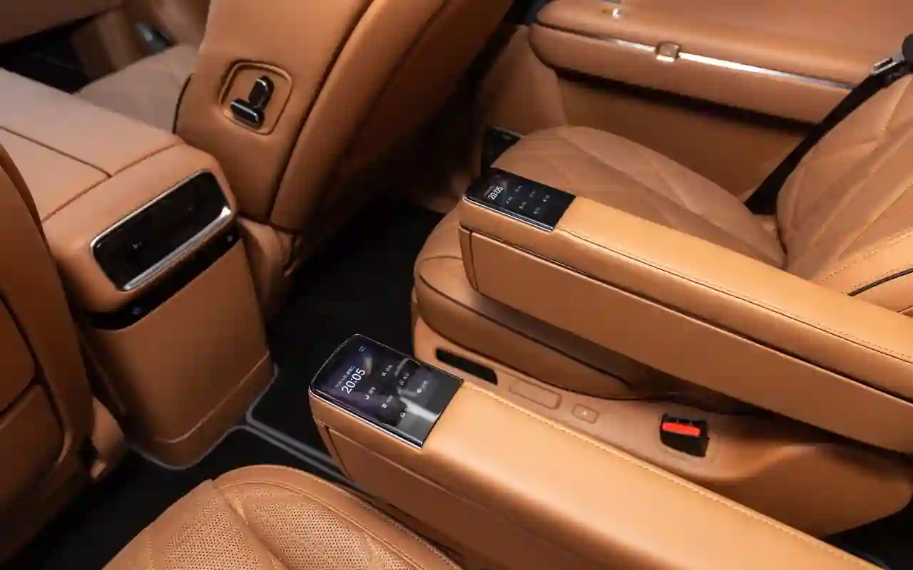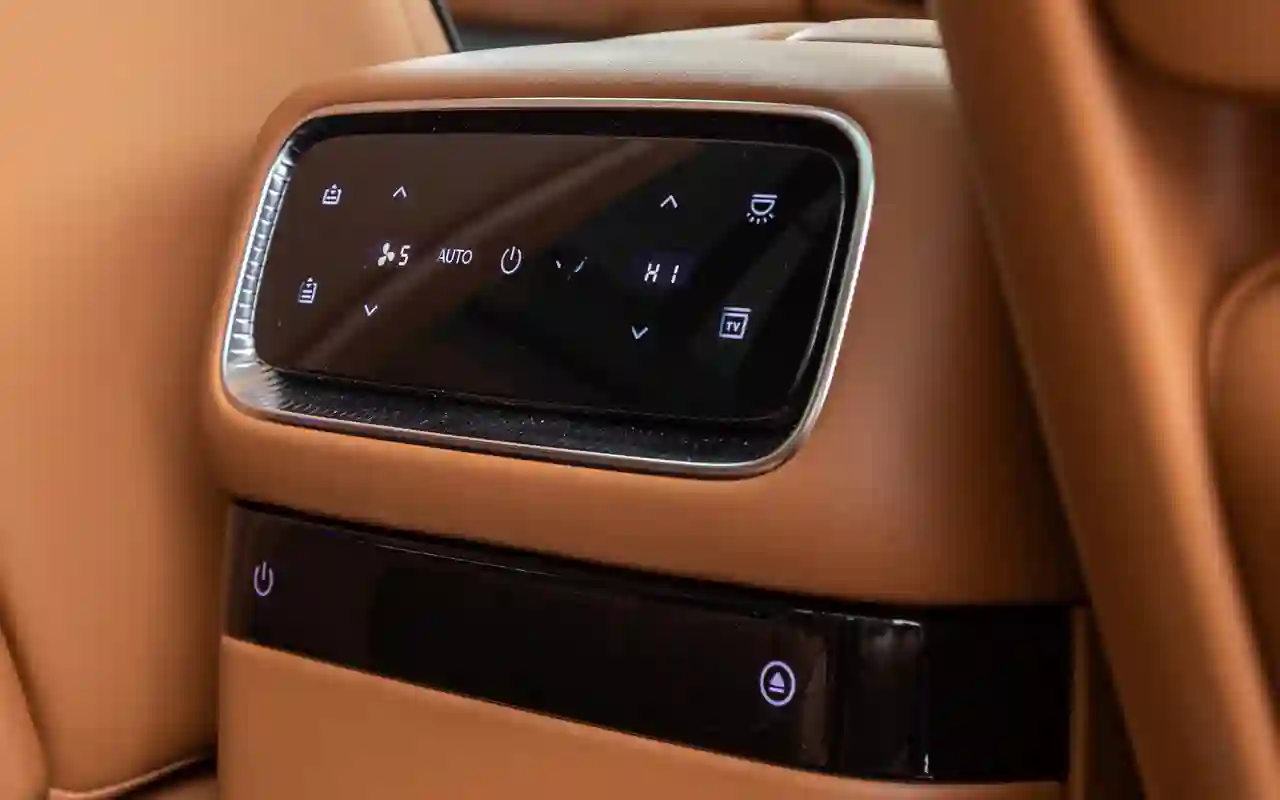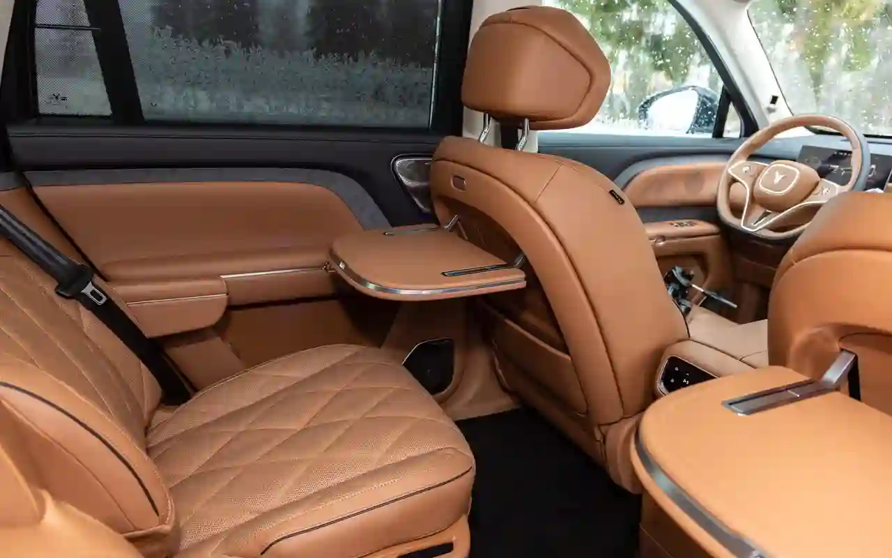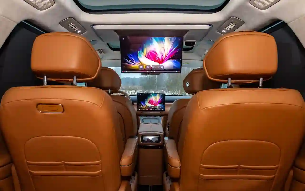 О банальных подогревах с вентиляциями говорить не имеет смысла. У каждого сиденья на втором ряду — отдельный 3,5-дюймовый цифровой пульт со всеми прибамбасами: хоть музыку включай, хоть караоке или видеоигру, либо же раскладывай в кровать, если захотелось вздремнуть. Откидной телевизор диагональю 21,4 дюйма на потолке, громадная панорамная крыша, электрические шторки на боковых окнах и столики в спинках передних кресел — все в VOYAH ТАЙШАН / TAISHAN кричит о том, что пассажир здесь главный и машина только для него.