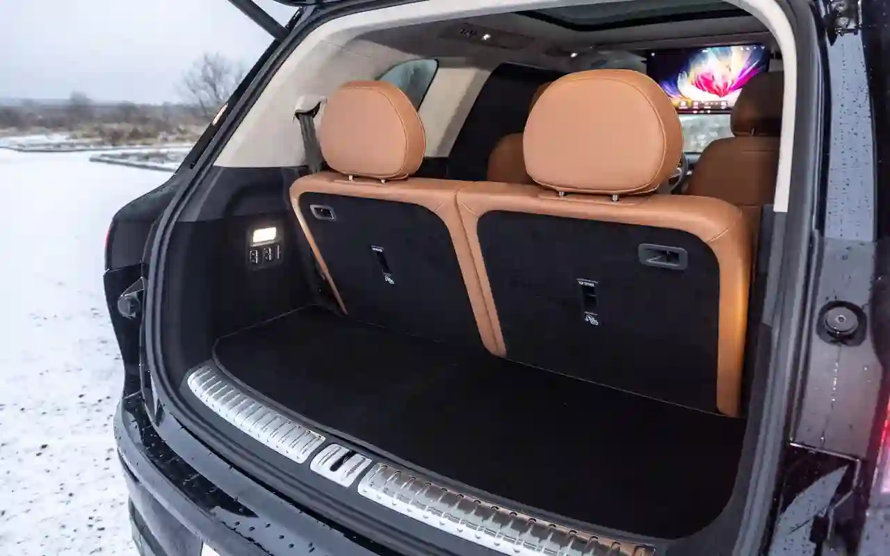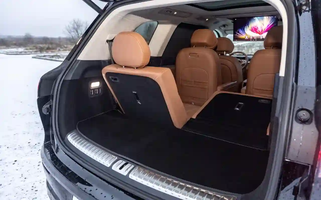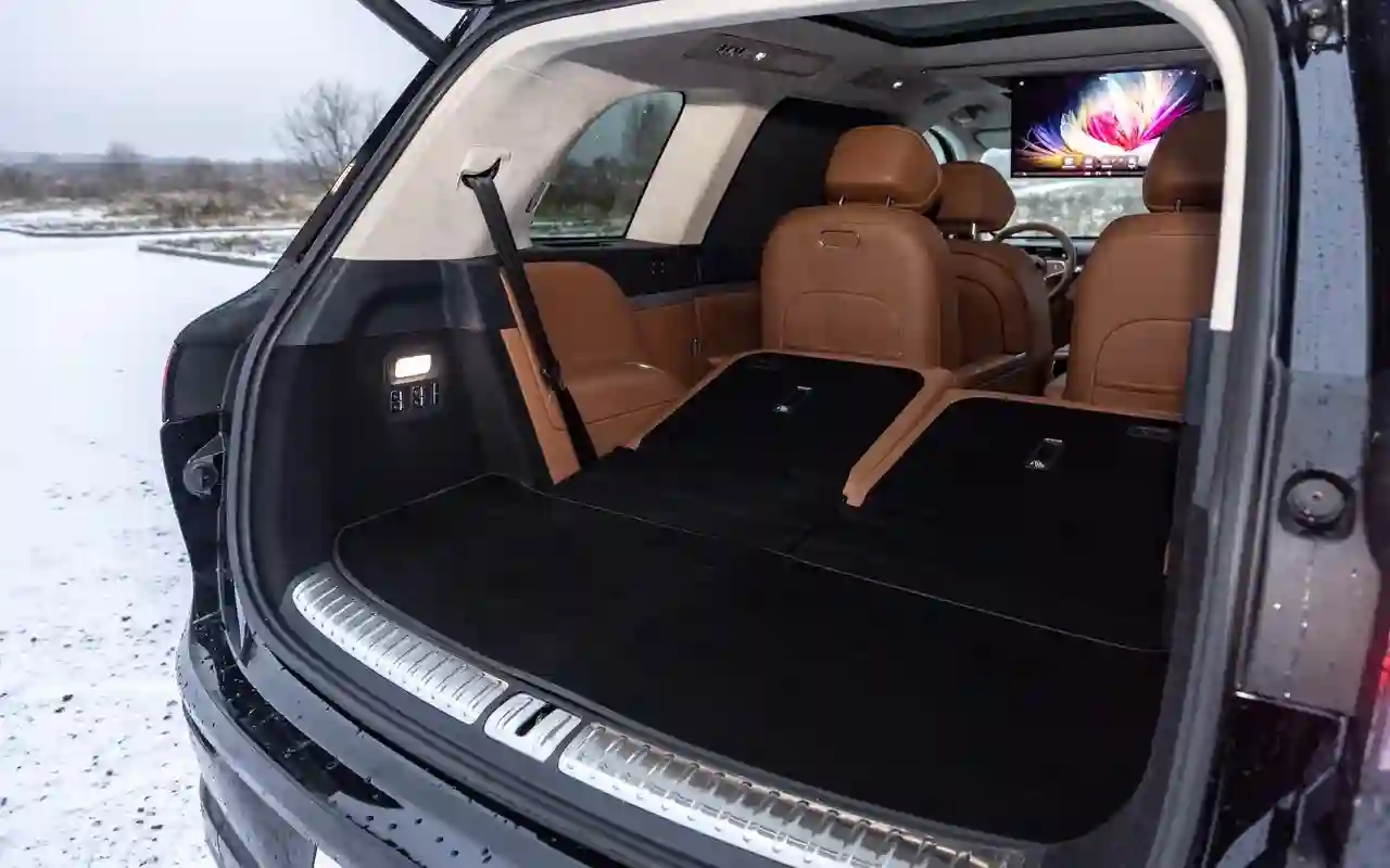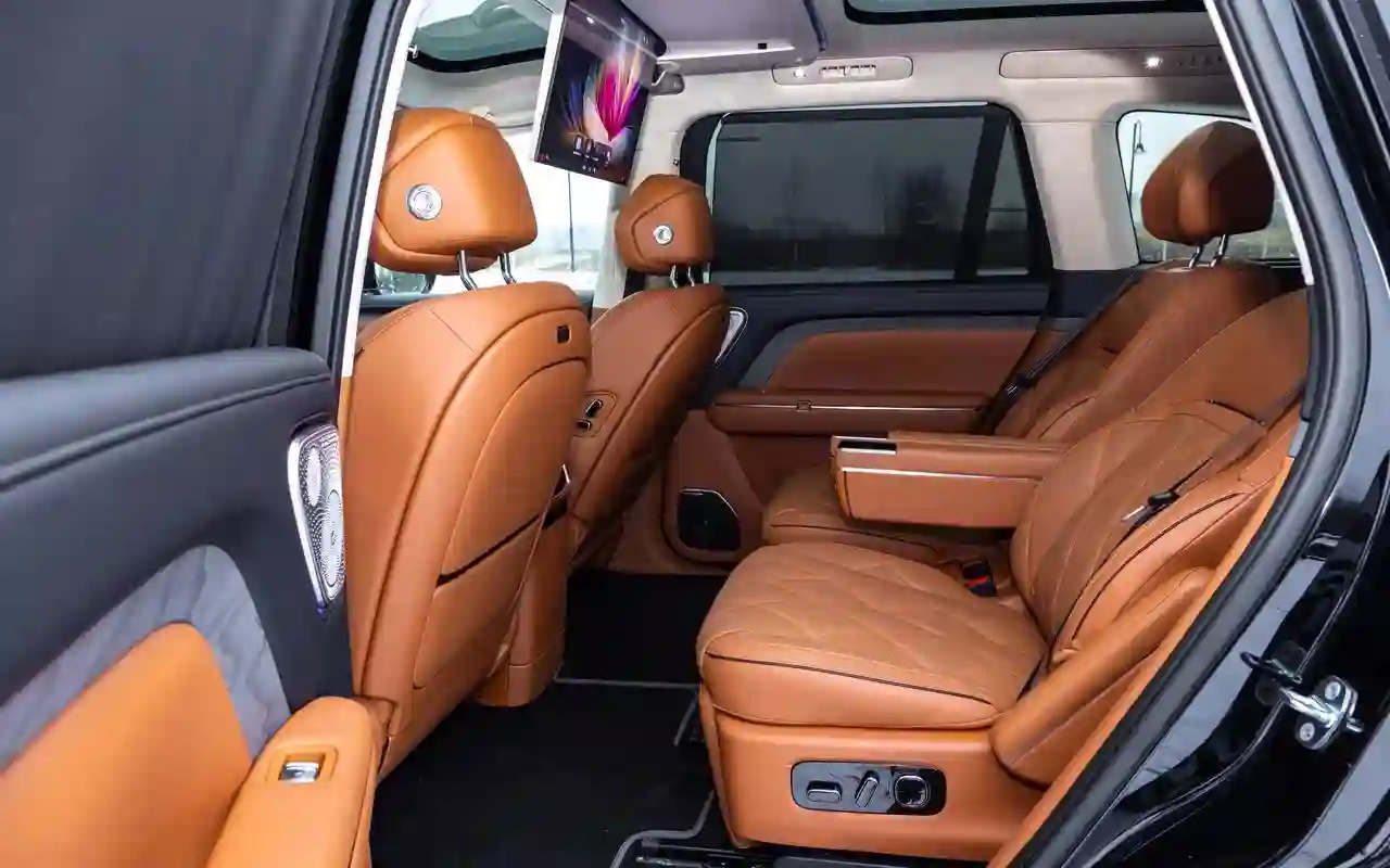 О банальных подогревах с вентиляциями говорить не имеет смысла. У каждого сиденья на втором ряду — отдельный 3,5-дюймовый цифровой пульт со всеми прибамбасами: хоть музыку включай, хоть караоке или видеоигру, либо же раскладывай в кровать, если захотелось вздремнуть. Откидной телевизор диагональю 21,4 дюйма на потолке, громадная панорамная крыша, электрические шторки на боковых окнах и столики в спинках передних кресел — все в VOYAH ТАЙШАН / TAISHAN кричит о том, что пассажир здесь главный и машина только для него.