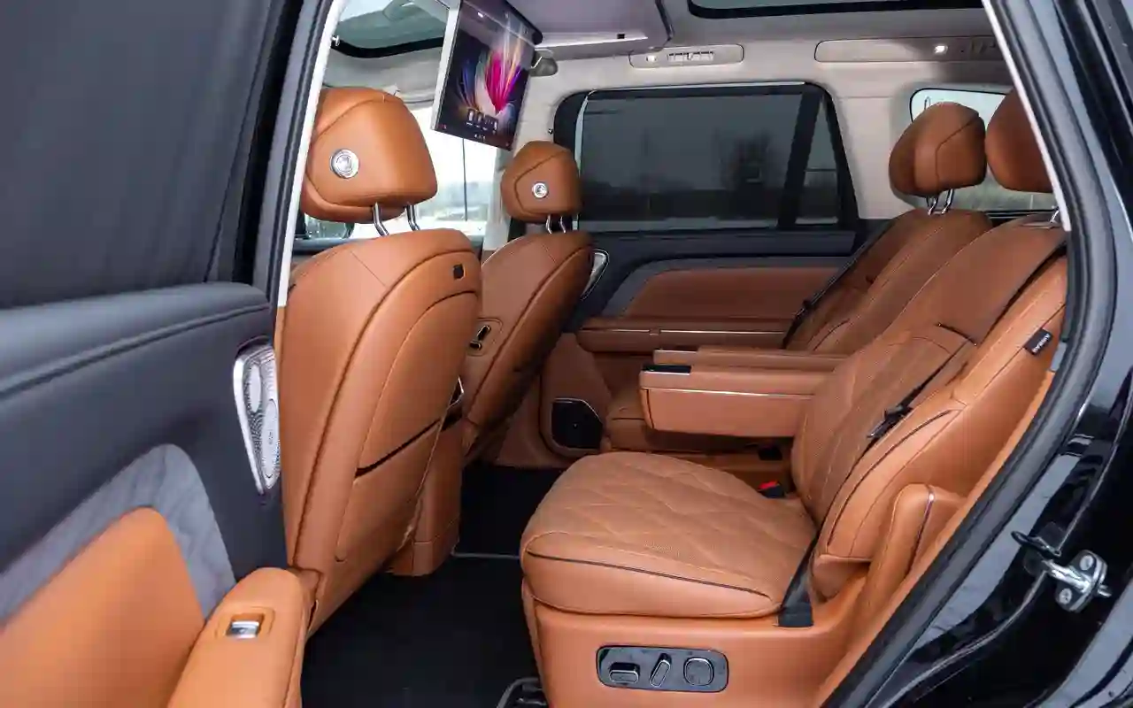 Погрузившись на драйверское место и нажав лишь одну клавишу на центральной консоли, можно подстроить его профиль эксклюзивно под себя: сиденье будто обволакивает спину с учетом анатомических особенностей. Такого мы, пожалуй, еще не встречали. Добавьте сюда 10-точечный массаж в спинках, 6-точечный массаж подушек первого и второго рядов и 4-точечный массаж для ног правого кресла во втором ряду плюс режим нулевой гравитации и вы попросту не захотите покидать эти апартаменты.